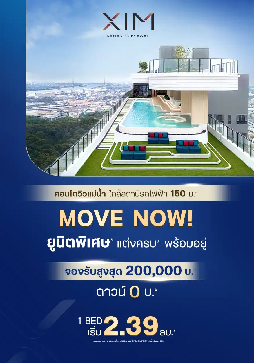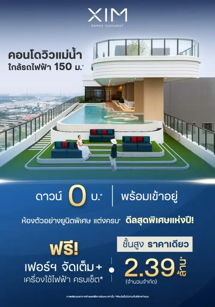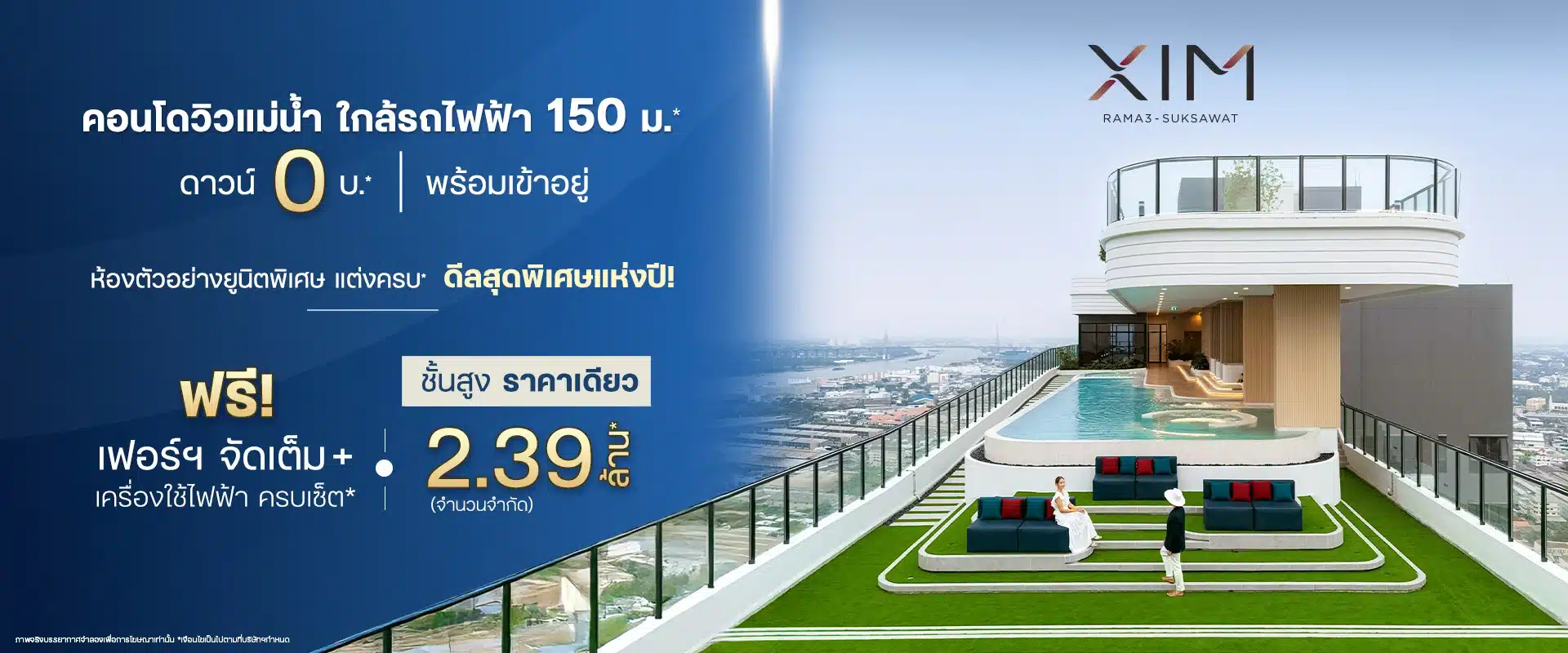 Xim Rama 3 – Suksawat คอนโดที่ใกล้ “บางกะเจ้าเพียง” 15 นาที* สัมผัสอากาศบริสุทธิ์และธรรมชาติอันงดงามไปกับ Oasis ที่ดีที่สุด