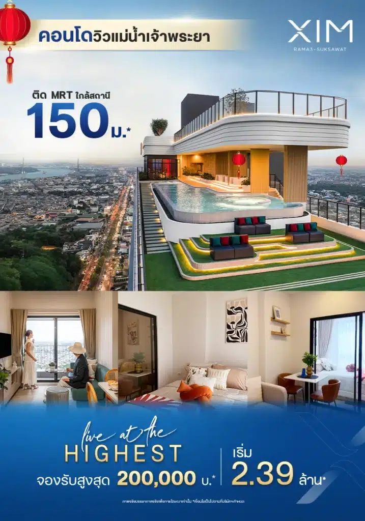 Xim Rama 3 – Suksawat คอนโดที่ใกล้ “บางกะเจ้าเพียง” 15 นาที* สัมผัสอากาศบริสุทธิ์และธรรมชาติอันงดงามไปกับ Oasis ที่ดีที่สุด